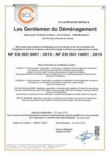 Tous nos adhérents bénéficient de certificats ISO 9001 & ISO 14001 qui couvrent l’ensemble de leur activité de déménagement :